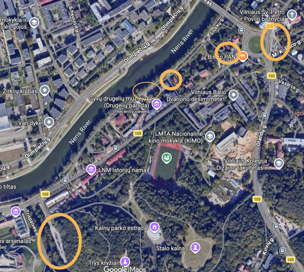 Automobilį parkuoti siūlome šiame žemėlapyje nurodytose vietose.